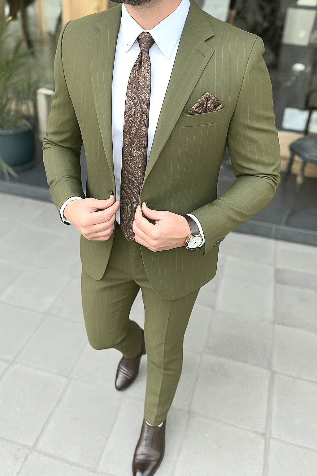 Abito gessato monopetto verde