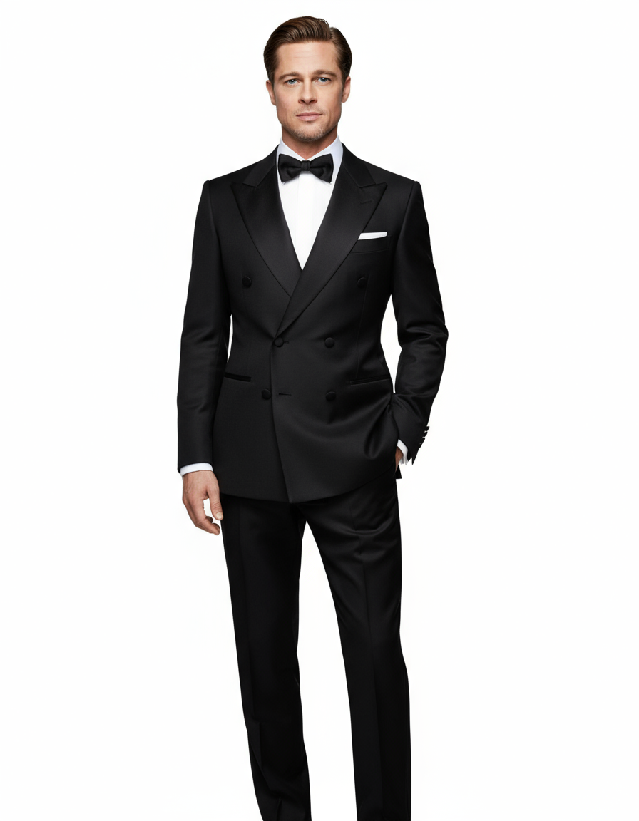 Abito uomo Smoking doppiopetto con rever a lancia in raso.