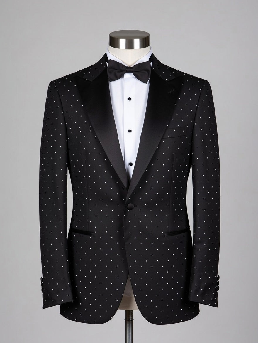 Smoking Nero Glitterato Petto a Lancia - Stile Iconico Made in Italy