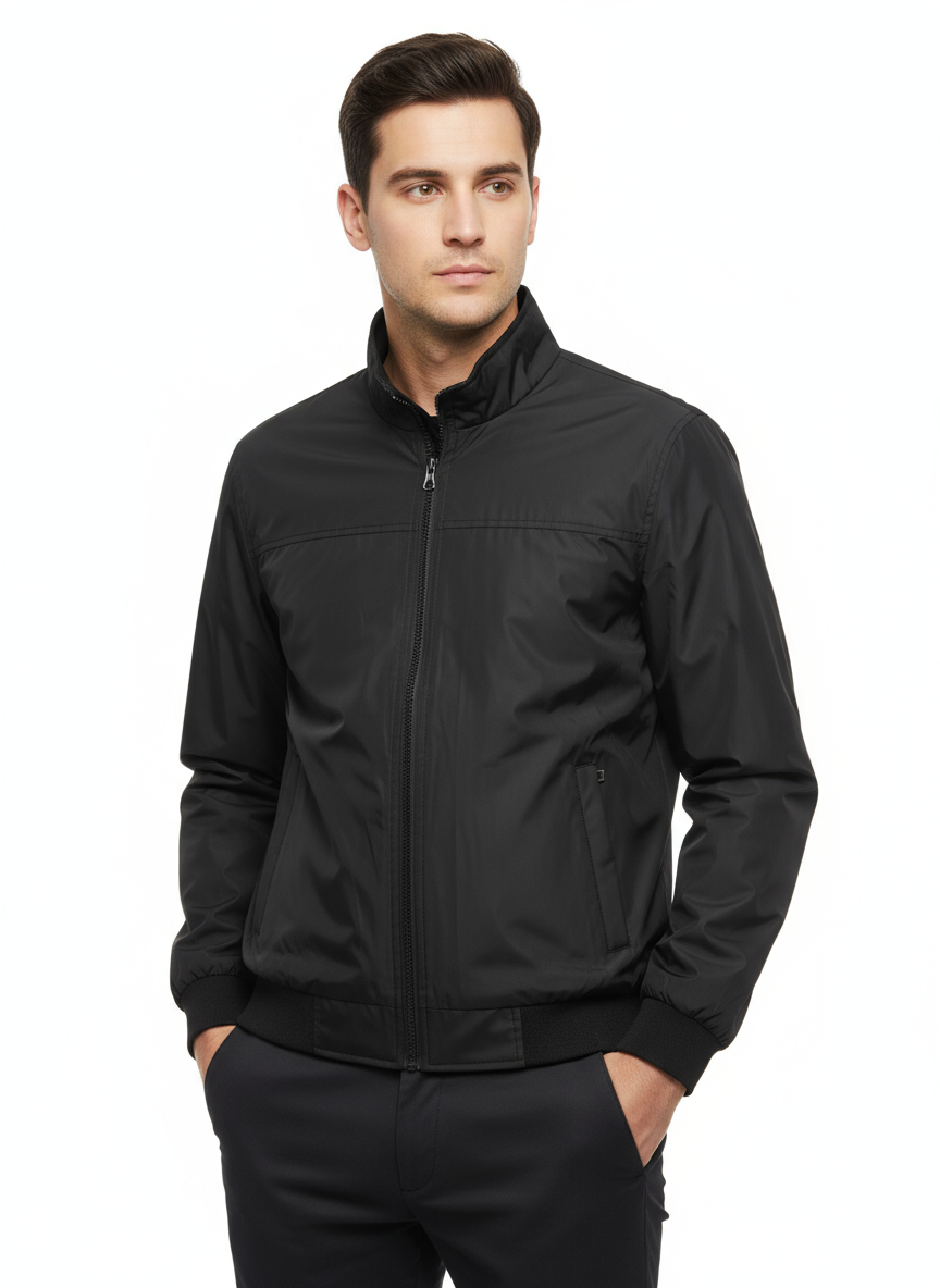 Questo giubbino leggero impermeabile di colore nero è la scelta ideale per chi cerca uno stile semplice ma funzionale in ogni stagione